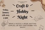 Four Sisters Winery invites everyone to an evening of creativity and fun working on your favorite crafts and hobbies. Free entry and 10% off wine by the glass, and charcuterie boards available for purchase.