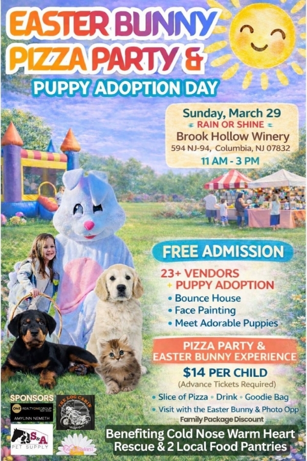 Hop on over for an afternoon of springtime fun, community spirit, and hoppy memories! A free event, with the exception of the Easter Bunny Pizza party, to attend and open to the community. Activities include face painting, bounce house, music, over 23 vendors set up, ice cream from Village Sundaes, wine, sweet treats, Cold Nose Warm Heart adoptions and more!