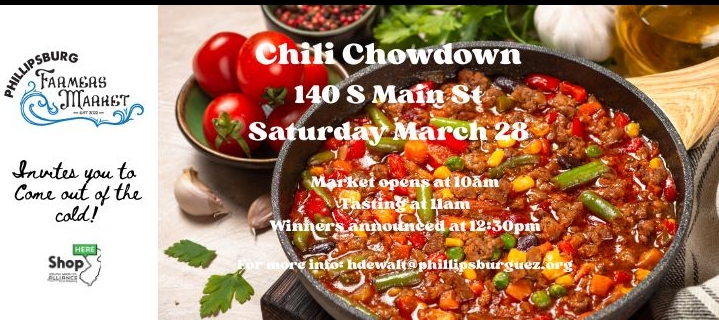 The Phillipsburg Farmers Market has moved indoors for the winter, open the 2nd and 4th Saturday from January through April, each with a theme. Customers can continue to buy their favorite fresh and local foods while supporting community vendors. This Saturday is the Chili Chowdown! Bring your best chili!