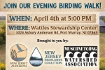 Celebrate the return of spring with an immersive evening in the field! Join the Musconetcong Watershed Association, New Jersey Highlands Coalition and New Jersey Audubon for a guided birding walk at the beautiful Wattles Stewardship Center, perfectly timed for the height of migration season.