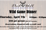Join Buck Hill for a delicious dinner featuring wild game, with pheasant, antelope, venison and wild boar on the menu!