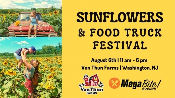 Celebrate sunflower season with food trucks, live music, and a walk through the Sunflower Trail. Bring your lawn chair and blanket and join us for delicious food from our lineup of food trucks, live music, games and activities for all ages! Live music by Naughty Humphrey and Grand Theft Audio NJ.