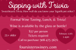 How well do you know your significant other? Formal wine tasing, lunch and trivia! 37/person, 21+