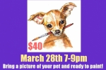 Attention Pet Lovers! Want to paint a picture of your pet? Then, this painting event is for you! For $40, bring a picture of your pet and get ready to paint.