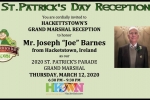 Reception to honor 2020 St. Patrick’s Parade Grand Marshal, Mr. Joe Barnes from Hacketstown, Ireland. The reception dinner features a live performance by Rory O’Moore School of Pipes and Drums and a dance performance by Slattery School of Irish Dance.